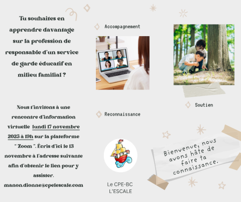 Rencontre d’information sur la profession de responsable en service de garde éducatif en milieu familial